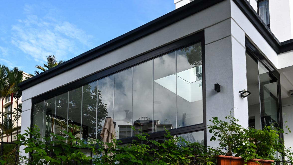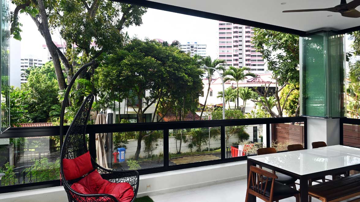 Since the Glass Curtains® can be retracted fully, the owner is also able to fully open up his patio for natural ventilation when he wants to.